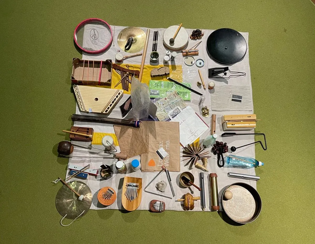 Ich arbeite mit einem mobilen Klangkoffer voller Instrumente, die keine musikalischen oder instrumentalen Vorkenntnisse erfordern. In ihm sind neben bekannten Instrumenten viele Alltagsgegenstände, gefundene, selbst erfundene und traditionelle Klein-Instrumente aus aller Welt zu entdecken.